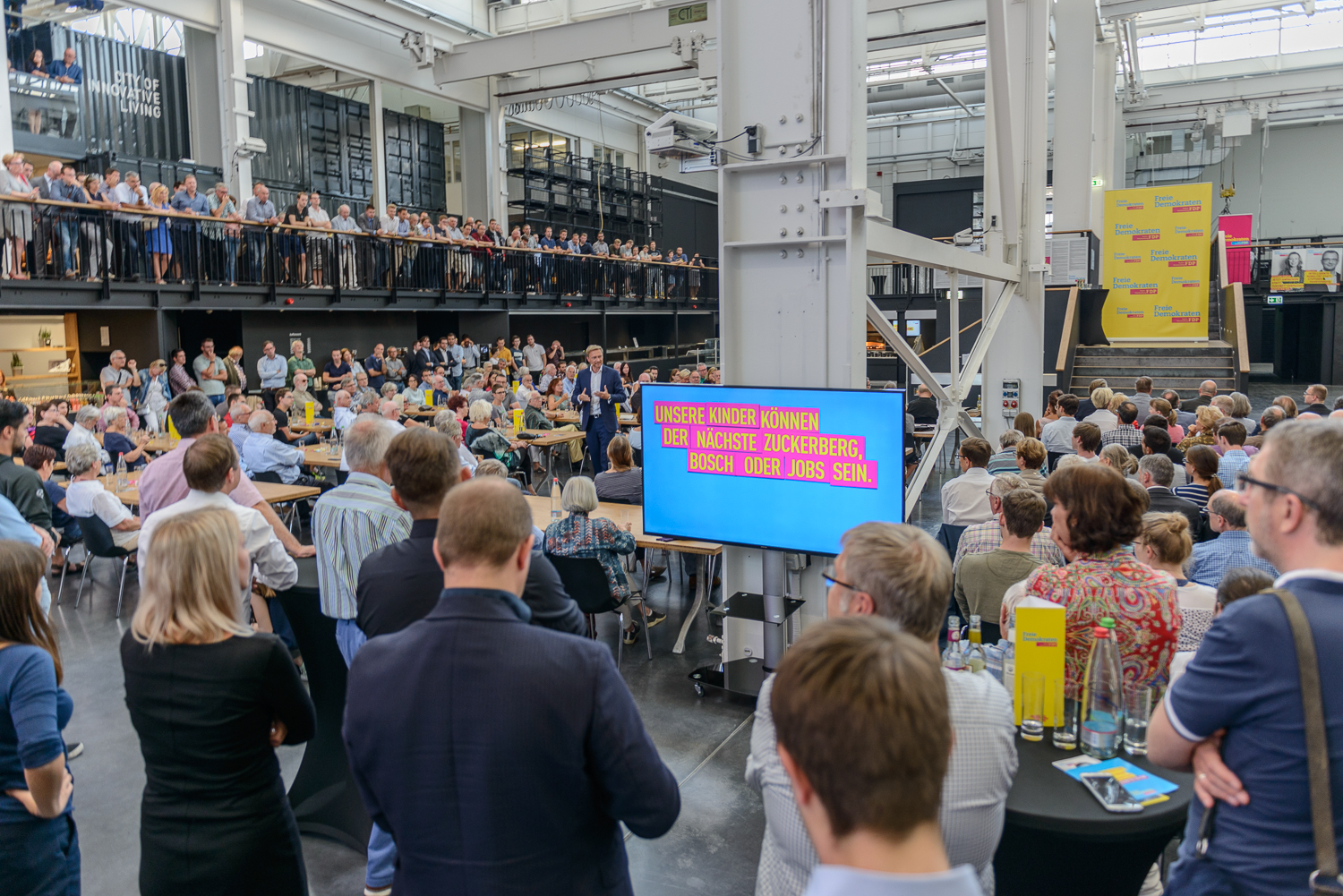 Einen furiosen Auftritt hatte der FDP-BundesvorsitzendeChristian Lindner gemeinsam mit dem FDP-Landesvorsitzenden Michael Theurer und den beiden Bundestagskandidaten aus den Ludwigsburger Wahlkreisen, Stefanie Knecht und Marcel Distl vor mehr als 500 begeisterten Zuhörern im urbanharbor in Ludwigsburg.
